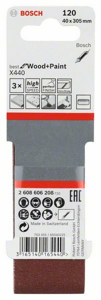 3-dielna súprava brúsnych pásov X440 40 x 305 mm, 120; 3-kusové balenie