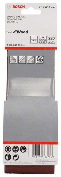 3-dielna súprava brúsnych pásov X440 75 x 457 mm, 220; 3-kusové balenie