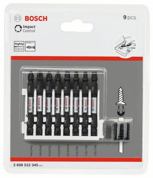 Balenie hrotov a skrutkovača s riadením príklepu, 9-dielna ; 9-dielne balenie (Index); 8 obojstranných skrutkovacích bitov a magnetické puzdro viac informácií