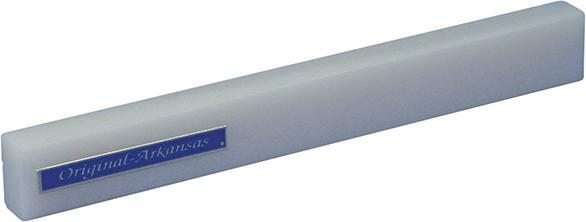 Brousek, Tvrdý Arkansas, plochý Provedení: Originální přírodní brousek Arkansas s obzvlášť souměrnou strukturou, vysokým stupněm jemnosti a tvrdosti k dosažení jemného a přesného ostří s nízkou mírou postupného otupění. Použití: K obrábění velmi jemných a citlivých břitů. Optimální výsledky při použití řídkých olejů či petroleje.