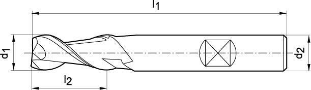 Drážkovací fréza (na vrtané drážky) pro obrábění hliníku Provedení: Zub do středu, vhodná k vrtání. Použití: Pro zanořování, frézování drážek a obvodové frézování.