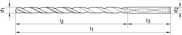 Hloubkový vrták, 25 x D Postup RT 100 T: • Iniciální frézování plochy v pravém úhlu k vstupnímu úhlu obrábění vrtáním. • Vrtání cylindrického pilotního otvoru (tolerance F9) do hloubky alespoň 1 x D. • Závrt v pilotním otvoru s cca. 300 ot./min. při f = 500 mm/min. • Nastavení tlaku chladiva a počtu otáček. • Průběžné vrtání do úplné hloubky vrtaného otvoru bez cyklu uvolnění. • U průchozích otvorů se šikmým průnikem vrtáku na druhé straně je nutné snížit záběrovou rychlost o vf cca. 1 mm před průnikem na 40 %. • Po dosažení stanovené hloubky vývrtu snižte počet otáček na nulu a vypněte přísun chladiva, vrták vysuňte ve spěšném chodu. • Běžné chlazení mazivem pod tlakem alespoň 40 bar. Upozornění: Vrtáky lze několikrát po sobě dobrušovat. Všechny hloubkové vrtáky je nutné při návrtu zavést. Hloubkové vrtáky se nesmí ve strojním prostoru nikdy pohybovat volně s maximálním počtem otáček. Provedení: Pravořezné. Speciální tvar drážek s dvojitým zkosením hran a speciálním podbrusem. Se zkrutovým vnitřním chlazením přes lamely. Boční úhel čela 30°, silnější tloušťka jádra a žádné stoupání šroubovice. Vrták vykazuje velmi dobré samočinně středicí chování. Použití: na vrtání otvorů s velmi přísnou tolerancí Ø a velmi dobrou kvalitou povrchu. Vhodný k vrtání extrémně hlubokých otvorů do 25 x D, s vysokými řeznými rychlostmi. Mimořádně vhodný k obrábění materiálů, vytvářející krátké třísky, např. litiny železa, šedé litiny, zušlechtěné šedé litiny, temperované litiny, tvárné litiny a slitin hliníku s vysokým obsahem křemíku.