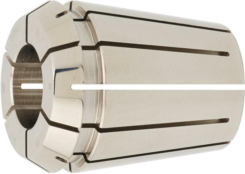 Přesná kleština GERC 11 - systém ER Provedení: ISO 15488-B (původní DIN 6499). Kleštiny představují standard ohledně přesnosti běžných kleštinových upínačů. Povrchové super dokončení s hloubkou drsnosti < 1,6 μm poskytuje vyšší podíl nosnosti, vyšší tuhost a přídržné síly, jakož i vyšší přesnost obvodové házivosti systému. Povrch všech kleštin je chráněný proti korozi novou ochrannou vrstvou FAHRION. • Přesnost obvodové házivosti a přesnost opakování 5 µm. • Stabilní provedení – Stačí jen 12 drážek pro dosažení požadovaného přemostění upínacího průměru podle DIN ISO 15488-B. V porovnání s kleštinami s 16 drážkami nejsou naše kleštiny tak náchylné se zasekávat ve spodním upínacím úseku. • Šetrné provedení – Všechny podélné hrany jsou nejen odjehlované, nýbrž dodatečně zaoblené, což chrání vnitřní kužel kleštinového sklíčidla před stopami po zářezech. To je předpokladem pro zajištění trvalé stejně vysoké přesnosti obvodové házivosti. Použití: K upínání nástrojů s válcovou stopkou podle DIN 1835 B, 1835 E, 6535 B a 6535 E. Upozornění: Přemostění upínacího průměru je 1 mm (pod Ø 2,0 mm = 0,5 mm). Uvádí se vždy největší Ø, to znamená, že Ø 16 mm se upne zpět na Ø 15 mm (popis např. GERC 32 F 470 E16).