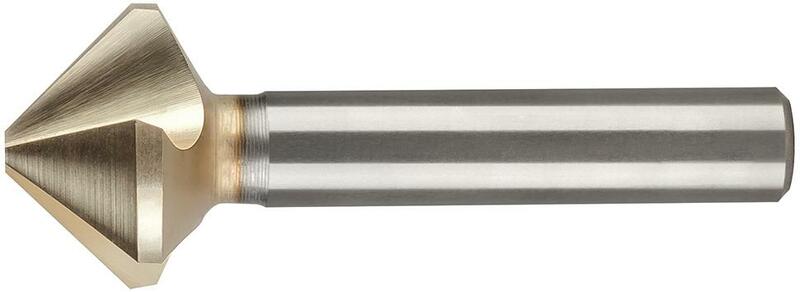 Kuželový a odjehlovací záhlubník s nerovnoměrnou roztečí, 90° Provedení: S radiálním podbrusem, nerovnoměrnou roztečí a rovnými drážkami na odvod třísek. Kromě toho koncipováno pro běžně používané materiály díky úhlům čela a hřbetu. Použití: Výrazná nerovnoměrná rozteč umožňuje obzvlášť klidný chod při zahlubování, povrch se tak obrábí čistěji a zatížení ostří se snižuje na minimum. Zahlubování a odjehlování pro zápustné šrouby DIN 963, DIN 964, DIN 965 a DIN 966 v jednom pracovním kroku.
