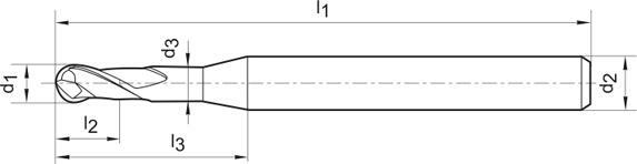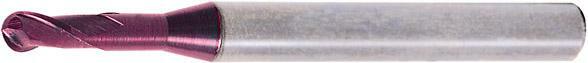 Mini rádiusová fréza z tvrdokovu Provedení: Zub do středu, vhodná k vrtání. Použití: Fréza se zúženým krčkem je zvlášť vhodná pro kopírovací frézování a drážkování ve větších hloubkách. Vhodná pro HSC obrábění do tvrdosti 52 HRC .