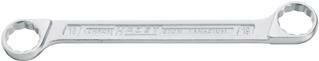 Oboustranný očkový klíč, rovný Provedení: DIN 837 B, ISO 3318. Z chromvanadové oceli, s matným pochromením, očka s tenkou stěnou a bočně odsazená, leštěná.