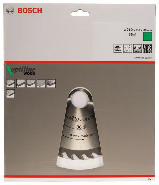 Pílový kotúč Optiline Wood 210 x 30 x 2,8 mm, 36