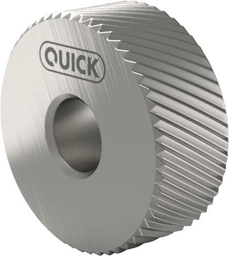 Rádlovací kolečko, tvar BR pravotočivá spirála (30°) Provedení: Slinutý kov, DIN 403 a s fazetkou. Frézované zuby. Použití: Na tvářecí rádlování (beztřískové tváření). Odsazený otvor.