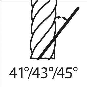 Stopková fréza z tvrdokovu Rychlost řezu je asi o 50 % vyšší než u nástrojů bez povlaku. Možnost suchého obrábění. Použití: Pro obvodové frézování a pro univerzální obrábění. Frézu lze použít k hrubování, drážkování a dokončovacím operacím.. Proměnlivé stoupání šroubovice 41°/43°/45° zajišťuje velmi klidný chod frézy, a tedy i velmi dobrou kvalitu povrchu obrobku při dokončovacích operacích. Při drážkování a hrubování lze dále dosáhnout až o 60 % vyššího posuvu. Oproti běžným nástrojům dosahuje fréza mnohem delší životnosti. Fréza s 3 břity má větší prostor pro třísky, a proto je také vhodná pro velkou hloubku řezu.