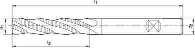 Hrubovací a dokončovací fréza, dlouhá, 3-5 břitů, DIN 844-L Provedení: Do Ø 20 mm zub do středu. Použití: Obvodové a čelní frézování.