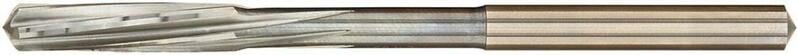 Strojní výstružník, TK Provedení: Tvrdokov do jmenovitého Ø 9,0 mm, tvrdokov od jmenovitého Ø 10,0 mm, s dlouhým břitem, krátkým zářezem a nerovnoměrnou roztečí zubů. Tím lze docílit čistého a přesného otvoru. Použití: K vystruhování průchozích otvorů, kvůli krátkému nářezu je vhodný pouze částečně k vystruhování neprůchozích otvorů s nerovným dnem. Používá se především na vysoce legované a tvrzené oceli do 52 HRC, litiny, měkké neželezné kovy, např. hliník a mosaz. * Dle výrobní normy.