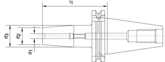 Termo upínač, DIN 69871, tvar AD/B, SK 40 Provedení: Přesné vyvážení. Z tepelně odolné legované nástrojové oceli. Všechny funkční plochy jsou přesně opracovány a zaručují kvalitu díky dvojité 100 % kontrole. Jemné vyvážení pomocí vyvažovacích šroubů. Vhodné pro HSS nástroje a nástroje z tvrdokovu. Tolerance úhlu kužele: AT3 Tolerance stopky: h6 Tvrdost po kalení: 54 –2 HRC Použití: Pro indukční, kontaktní a teplovzdušné termo přístroje. Rozsah dodávky: Termo upínač se šroubem pro nastavení délky. * Bez nastavovacího šroubu, bez závitu pro vyvažovací šrouby, s drážkami v upínacím otvoru pro přívod chladiva.