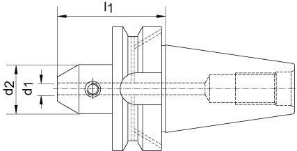 upínač Weldon, BT 40 Provedení: Z legované cementované oceli, s pevností v tahu v jádru cca 950 N/mm² a hloubkou zakalení min. 0,5 mm. Kužel ve shodě s DIN 254. Všechny funkční plochy jsou přesně opracovány a zaručují kvalitu díky dvojité 100 % kontrole. Tolerance úhlu kužele: AT3 Drsnost povrchu kuželu: Ra < 0,001 mm Otvor v toleranci: H5 Tvrdost po kalení: 60 –2 HRC Použití: K upnutí nástrojů s válcovou stopkou a boční unášecí plochou. Rozsah dodávky: Upínač s upínacím šroubem.