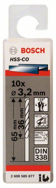 Vrtáky do kovov HSS-Co, DIN 338 3,2 x 36 x 65 mm