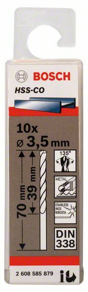 Vrtáky do kovov HSS-Co, DIN 338 3,5 x 39 x 70 mm