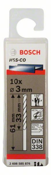 Vrtáky do kovov HSS-Co, DIN 338 3 x 33 x 61 mm