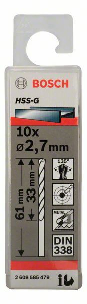 Vrtáky do kovov HSS-G, DIN 338 2,7 x 33 x 61 mm