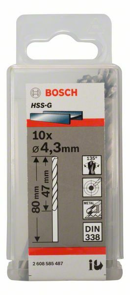 Vrtáky do kovov HSS-G, DIN 338 4,3 x 47 x 80 mm
