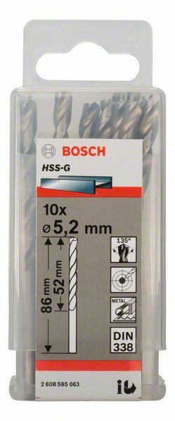 Vrtáky do kovov HSS-G, DIN 338 5,2 x 52 x 86 mm