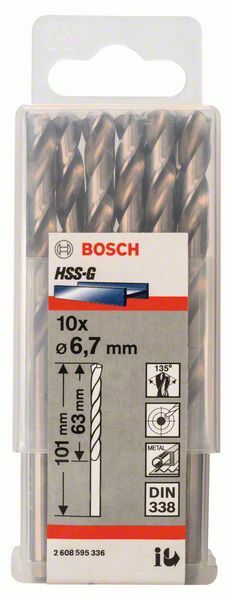Vrtáky do kovov HSS-G, DIN 338 6,7 x 63 x 101 mm