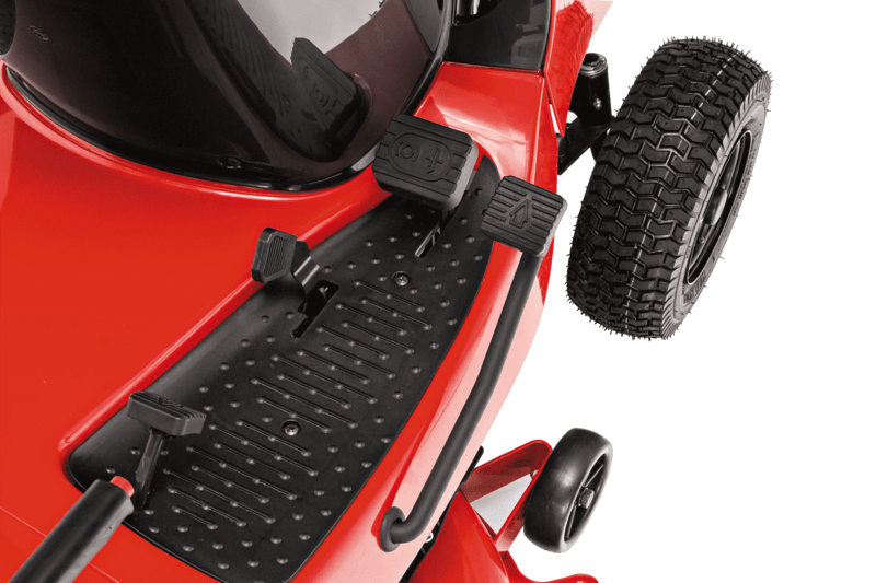 Základný model ponúka so šírkou záberu 92 cm, výkonným motorom Briggs and Straton PB 3130, hydrostatickou prevodovkou ovládanou pedálom a voliteľnou funkciou mulčovania nielen atraktívny pomer cena-výkon – vďaka ľahko dostupným ovládacím prvkom a elektromagnetickej spojke noža na jednoduché zapínanie a vypínanie kosiaceho zariadenia bude aj samotné kosenie detskou hračkou.stupňovité nastavenie pohodlného sedadla vodičaveľkoobjemový zberný kôš s akustickým signálom stavu naplneniaľahko prístupné ovládacie prvkynízka nástupná plocha a dostatok miesta pre nohyširoké pneumatiky pre optimálnu trakciukosiace zariadenie bez vibrácií uložené v guľôčkových ložiskáchhrdlo nádrže umiestnené vonku4-taktné výkonné motoryvedľa seba umiestnené pedále pre jazdu vpred a vzadrozmanitý program príslušenstva